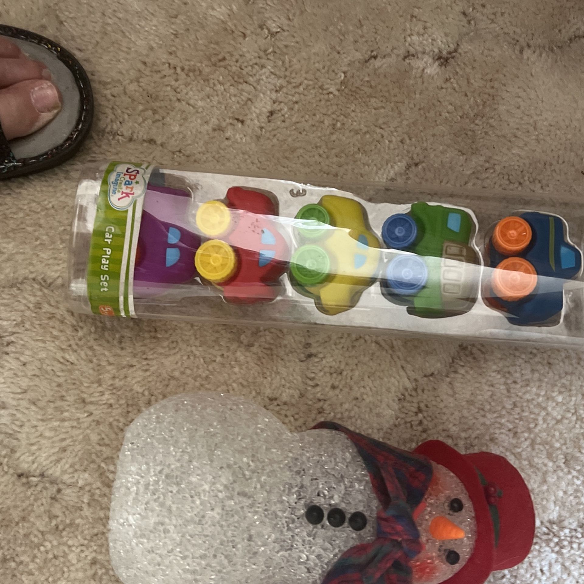 Toy Trucks Snowman From Avon, A Bear Bank And A Vase From Princess House