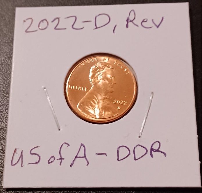 Lincoln Error Coin, 2022-D, reverse , Doubling on USofA.