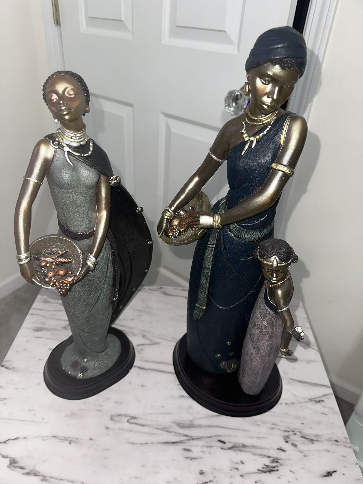 Beautiful set of two African-inspired decorative figurines. Each piece features detailed craftsmanship, rich colors, and metallic accents. Both figures are standing on sturdy bases and make stunning statement pieces for living rooms, entryways, offices, or display shelves. • Great condition • Intricate detailing on jewelry, clothing, and accessories • Solid and well-made • Perfect for collectors or home décor lovers • Smoke-free home Message me if interested! 📩 😊Meet-ups: I can meet in the RDU area - Raleigh, Durham, Cary, Holly Springs, Fuquay-Varina, Angier or Fayetteville! 📦Shipping: Happy to ship too! (Buyer just covers shipping cost.)