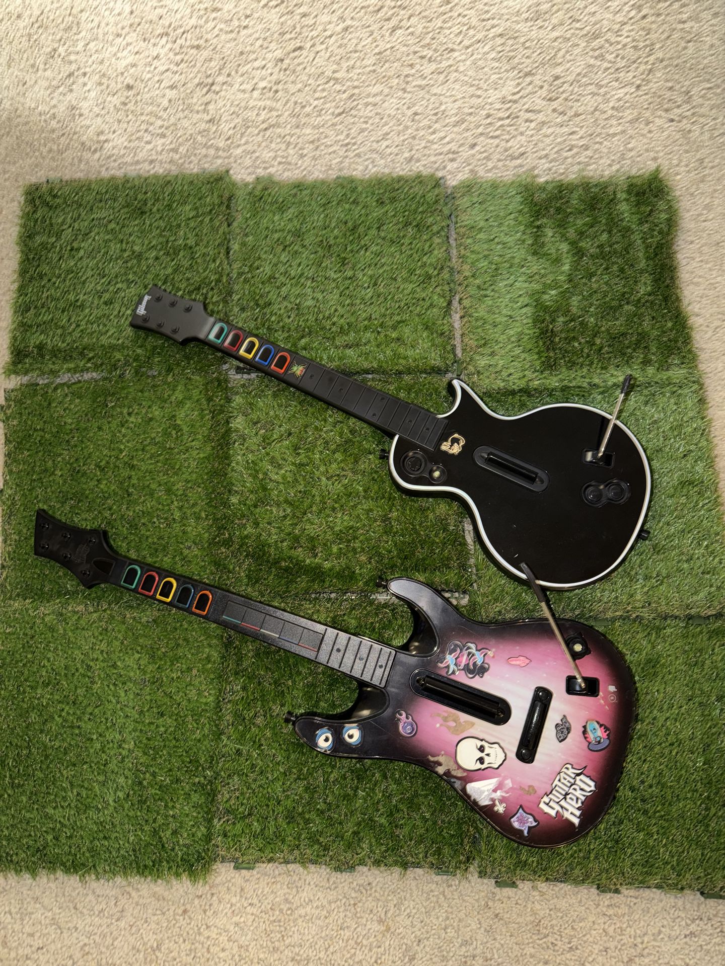Guitar Hero Wireless Guitar Controllers Black & Purple Plastic Set