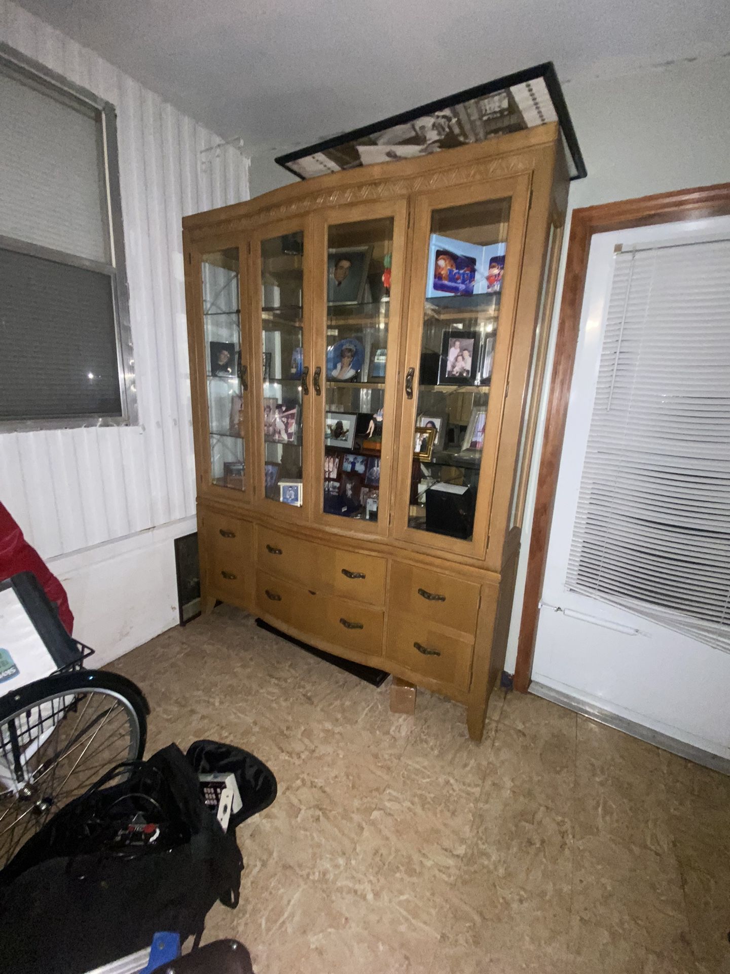 No knicks or dents, great condition. Comes in two pieces to move. Draws and doors operate properly..glass shelves inside $300 or best offer need gone ASAP