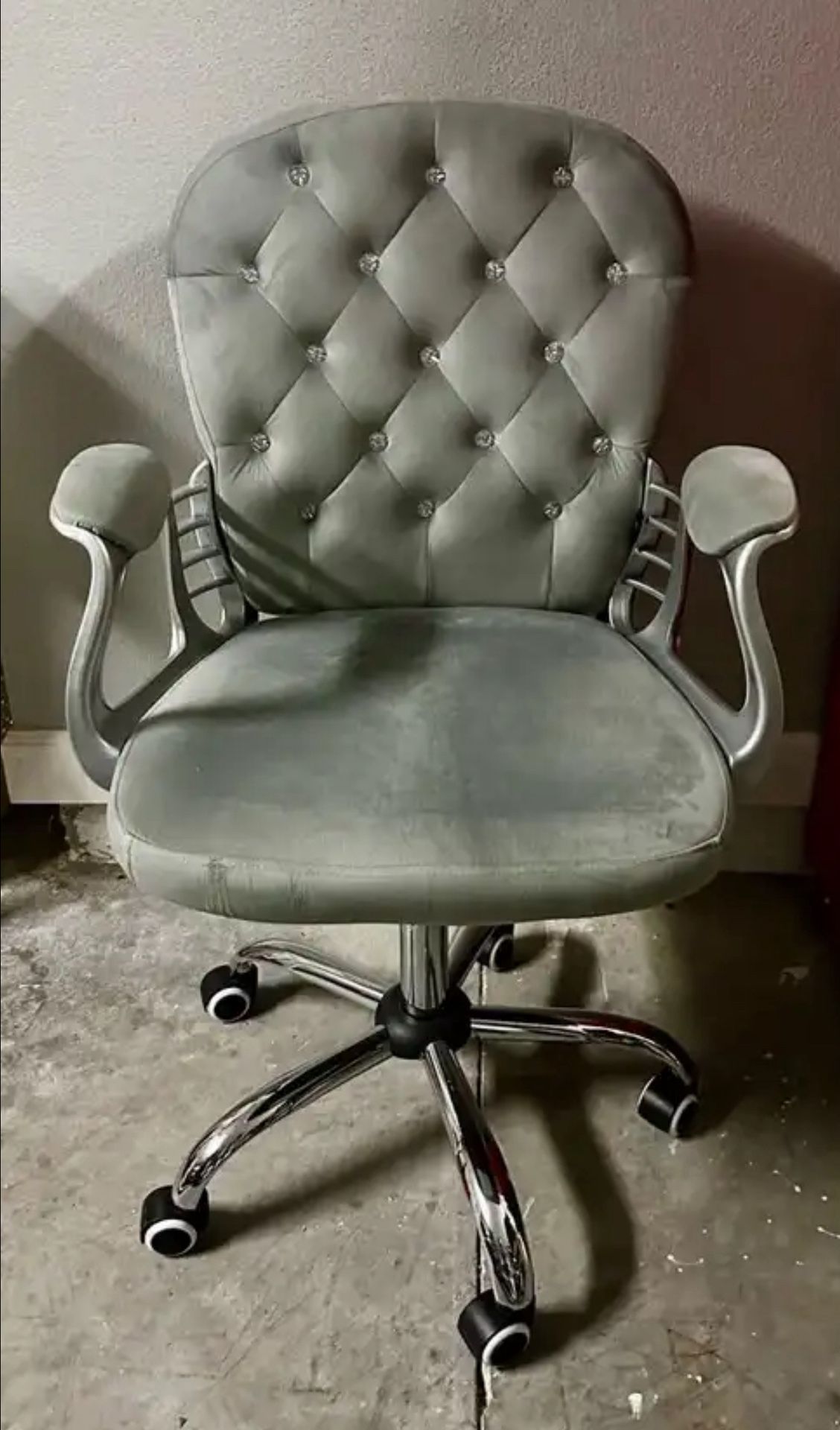 Comfortable Grey Jeweled Office Chair, Microfiber soft fabric with wheels.