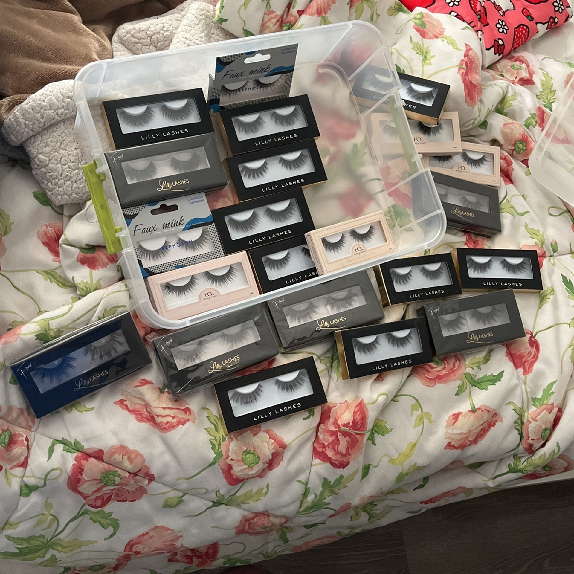 23 pairs of eyelashes which include Lily lashes styles Miami, Randy, Atlanta. House of lashes include lite and premium collection. Selling because I don’t use eyelashes anymore. All new and unused. Serious buyers only and pick up only.