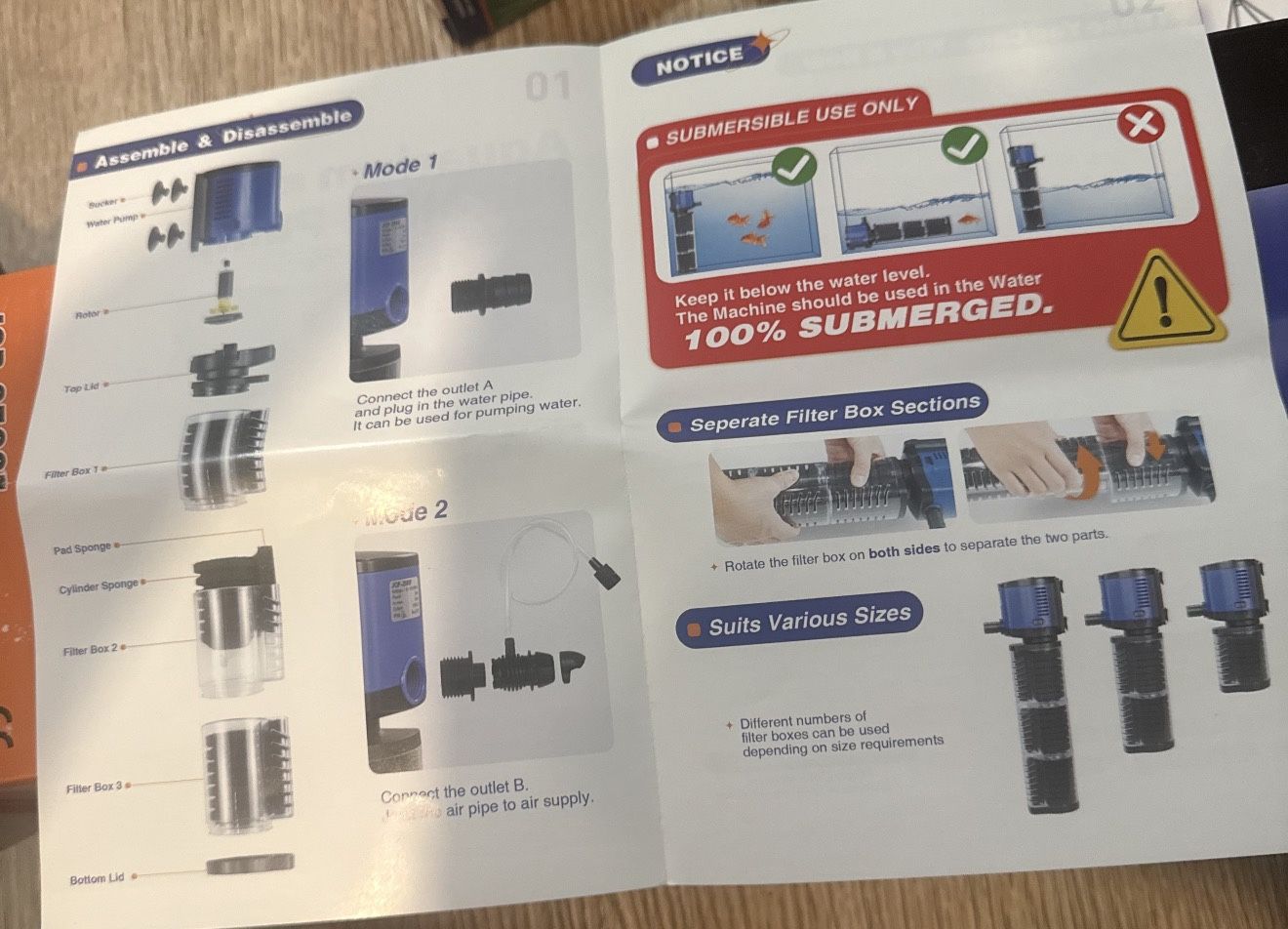 Internal Aquarium Filter for 75-200 Gallons Tank, Removable, Submersible Fish Tank Filter, 400GPH Powerful Pump for Large Fish Tanks, Turtle Tanks, De