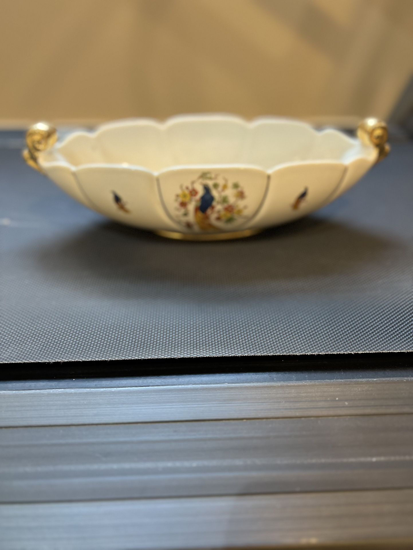 Ivory dish with colorful design