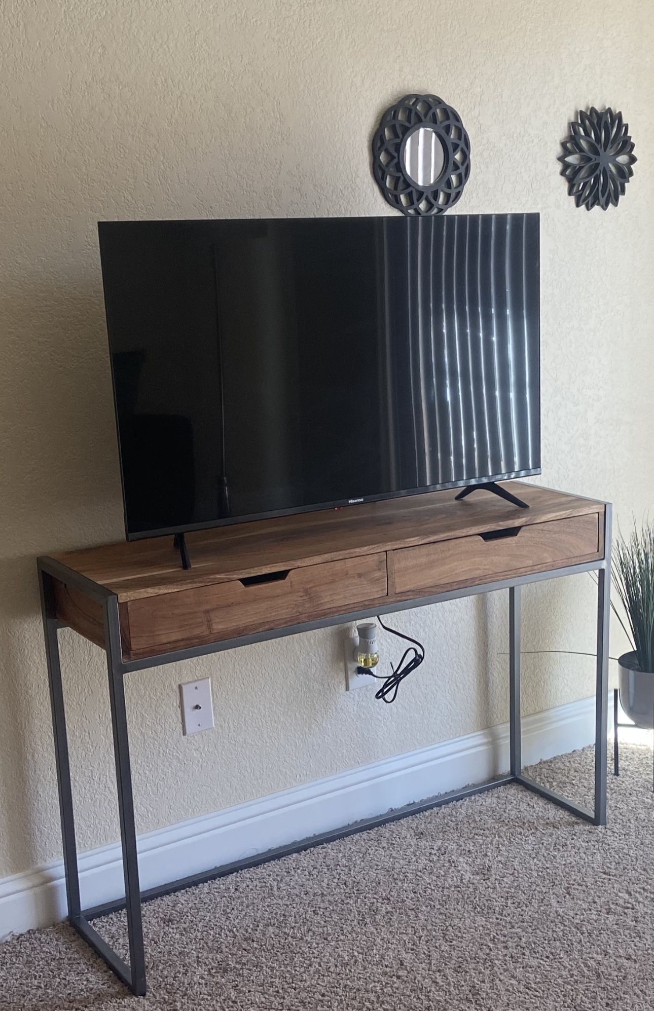 Still like New Only used in staged property Holds up to a 45 inch tv with tv Vizio 43 inch