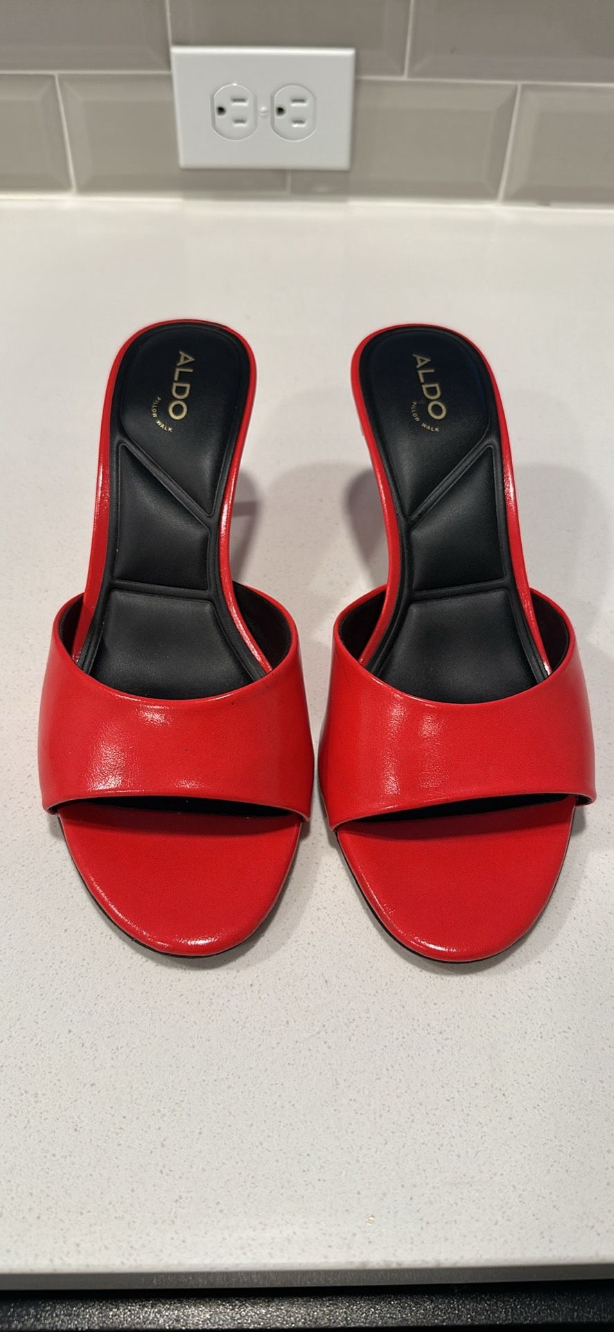 Size 9 Aldo Mules The cutest red mules!!!! I absolutely love them and they are surprisingly extremely comfortable. I have never been able to wear mules and these are literally perfect. I wore them once for 8 hours and had 0 pain Asking $80 OBO - originally paid 100 Pick up / Drop off / Shipping available
