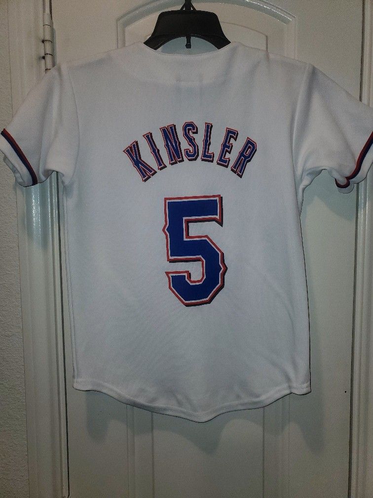 Majestic Mlb Ian Kinsler 5 Texas Rangers Baseball Jersey child 6/7 unisex Pre owned condition Saginaw porch pick up 76179