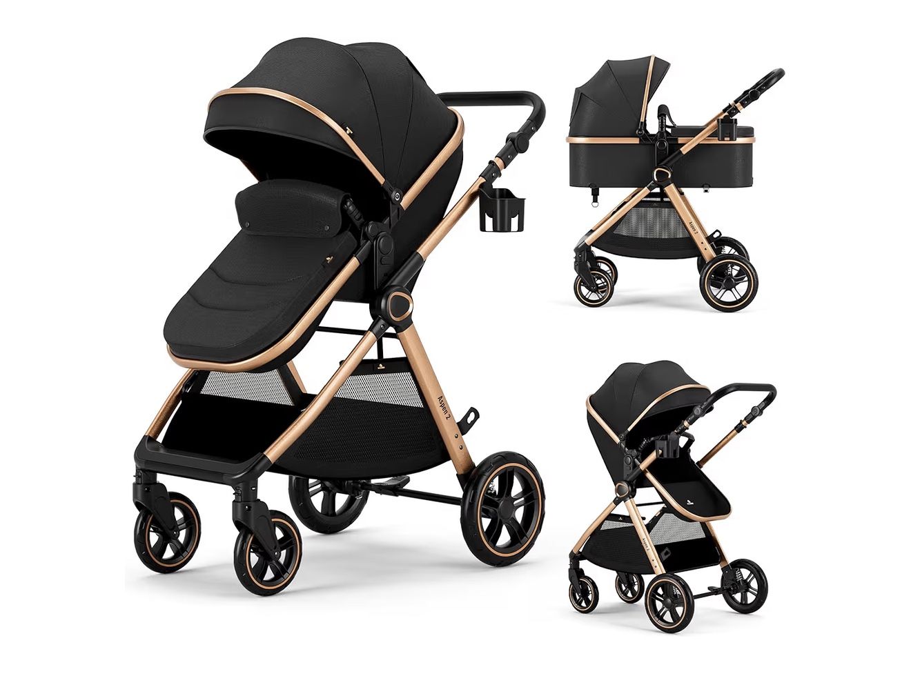 2 in 1 Baby Stroller, Convertible Bassinet Pushchair for Infants and Newborns 0-36 Months