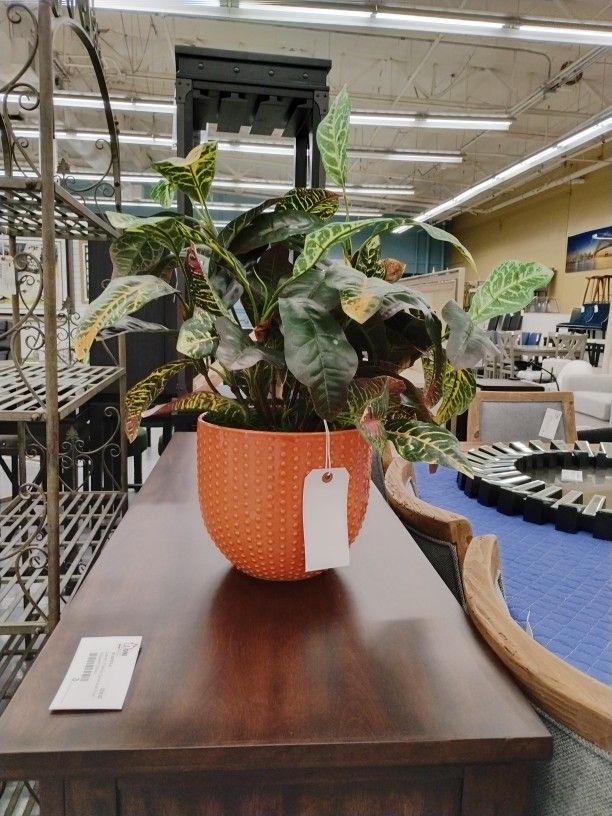 Item number 168887-S Artificial plant Orange ceramic pot with artificial plant 21 in x 9 in