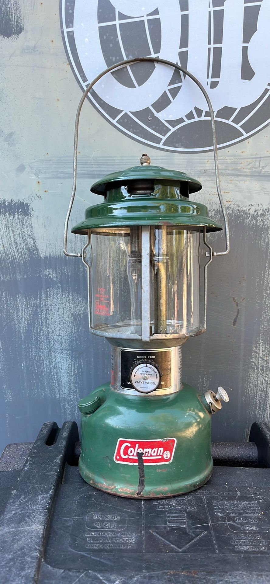Vintage Green Coleman lantern model 220H. Double mantle. Pick up near 5600 Meadowbrook Drive Fort Worth, TX 76112.