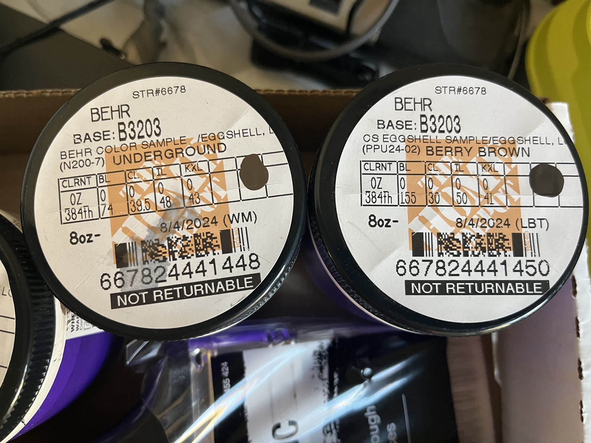 Brand new never opened sample sized paint from Home Depot. Paid $15 each