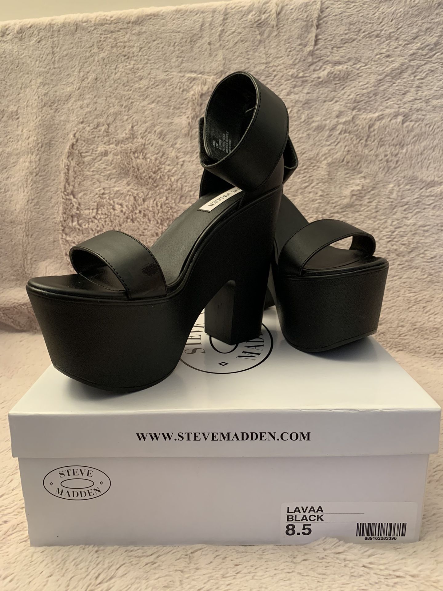 Steve Madden black high heel platform sandals. 6” heel with 3” platform. Size 8.5