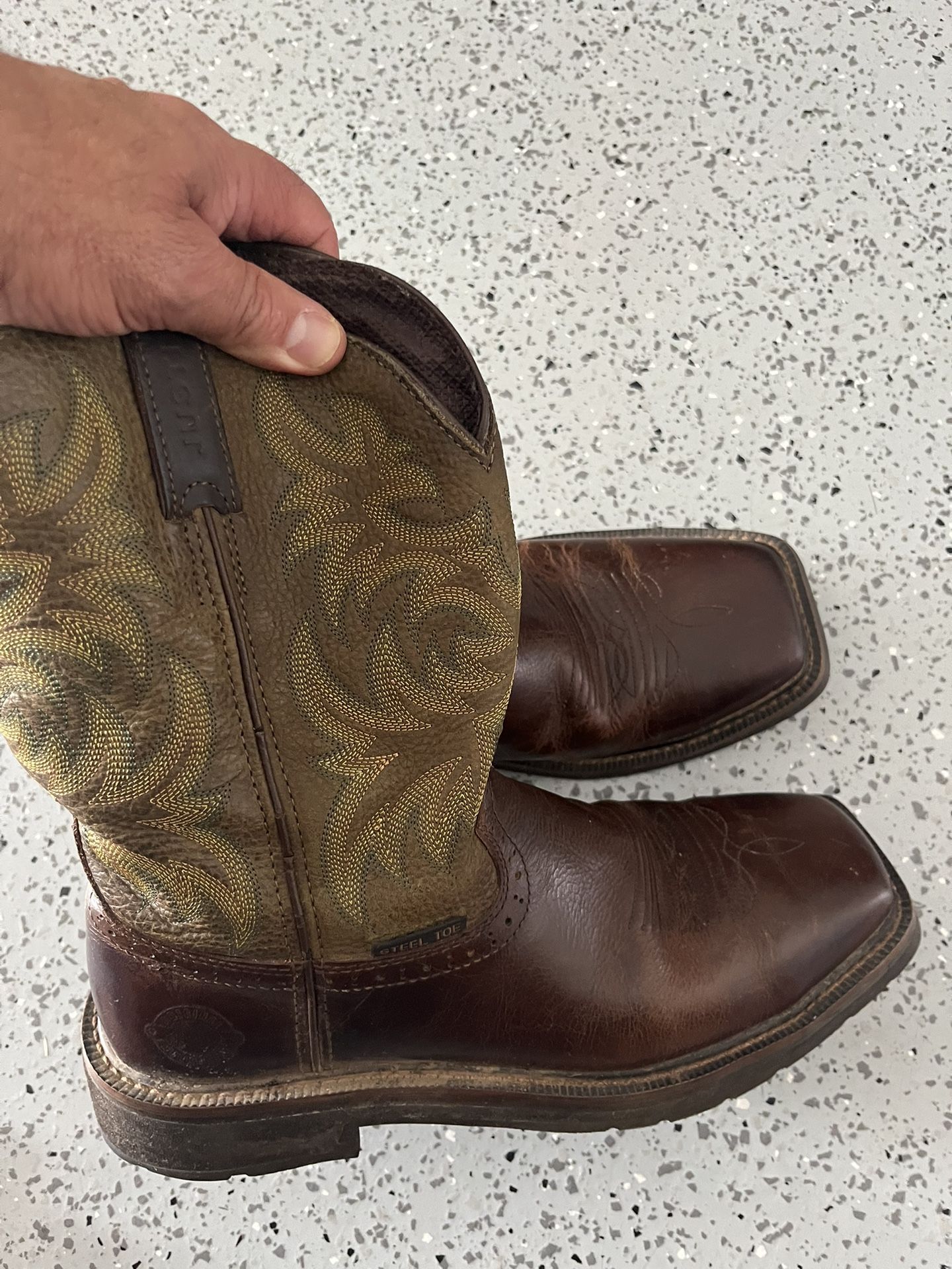 Justin steel toe cowboy work boots, size 9D. Square toe, Like new condition. Retails for $199
