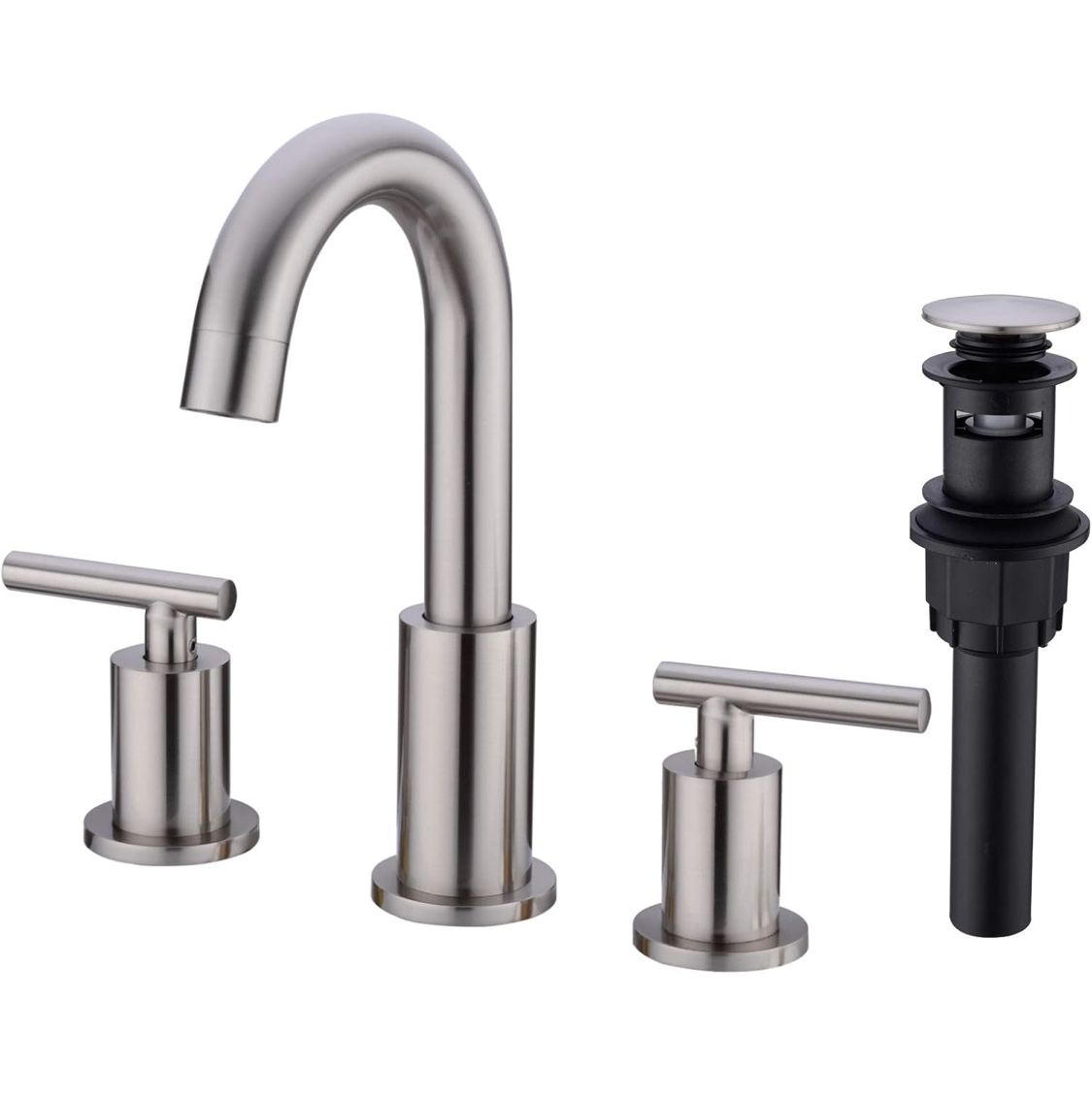 2-Handle 8 inch Widespread Brass Bathroom Sink Faucet with Pop Up Drain Assembly and cUPC Water Supply Hoses, Brushed Nickel