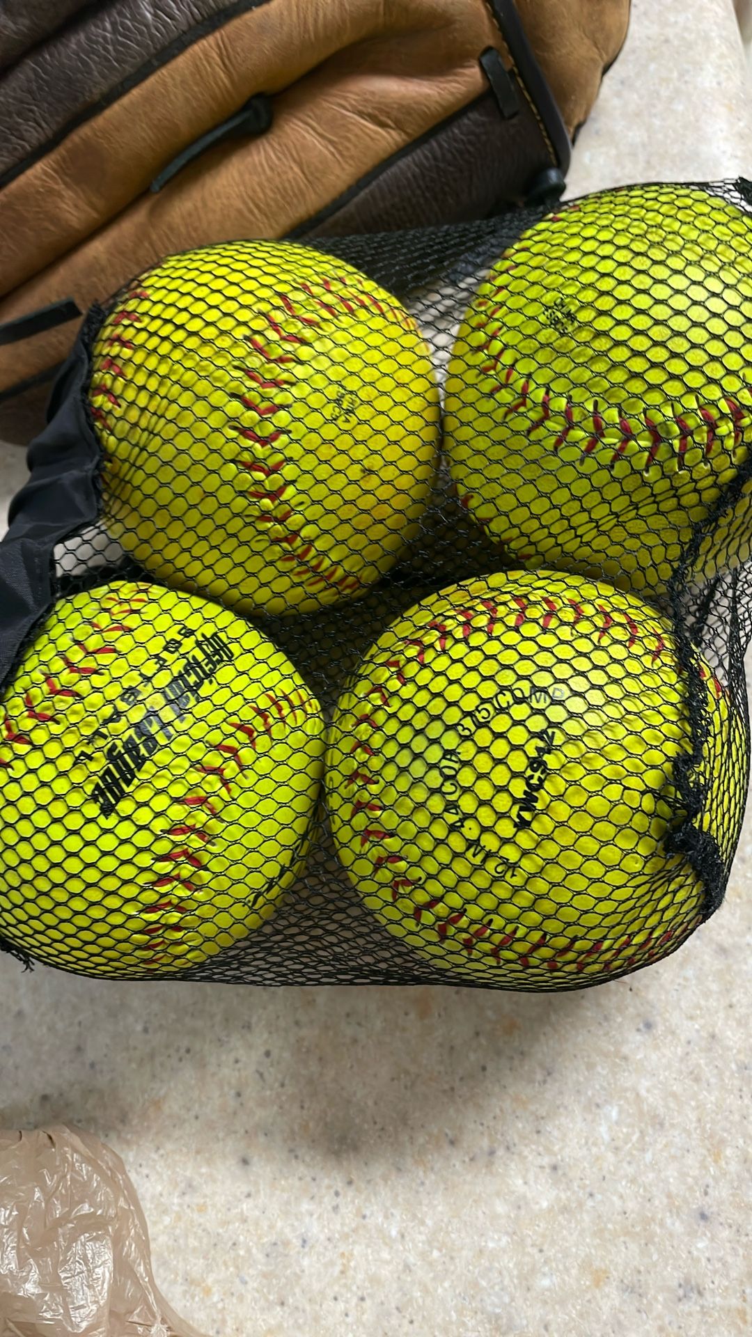 Four official league softballs and a Rawlings glove.