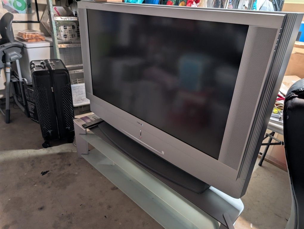 Excellent condition, rarely used Sony 50" Grand Wega TV with original remote, original base from Sony with strap, manual and also an extra new lamp replacement in box ( XL-2100U). The tv can be used with or without the original matching TV stand / base / media Center. We no longer need it, but it works flawlessly, from non smoking house, will help with delivery within reasonable distance. We moved to a smaller home and it doesn't fit in my daughter's room anymore. Perfect to use with RETRO Game consoles, VCR, DVD players. LOCAL PICKUP ONLY Product Highlights: High-Definition TV -- receives and decodes digital standard-definition and HDTV signals from over-the-air broadcasts (antenna required) Model Number: KF-50WE620 Type: AC LCD Projection TV Power Requirements: 120V, 60 Hz, 210 W Manufacturing Date: February 2005 Manufacturing Location: Made in Mexico Display Resolution: Capable of displaying signals up to 788p resolution; compatible with 1080i/720p/480p/480i signals when connected to an external tuner. Aspect Ratio: Widescreen 16:9 , 4:3 a spect ratio. Screen Size: 50 inches. Weight: Approximately 87 lbs. Features: Includes features like Wega Engine video processing, CineMotion 3-2 pulldown processing, and a high-contrast protective screen with anti-reflective coating. Connectivity: Features multiple A/V inputs, including component video and a DVI digital video input with HDCP copy protection..