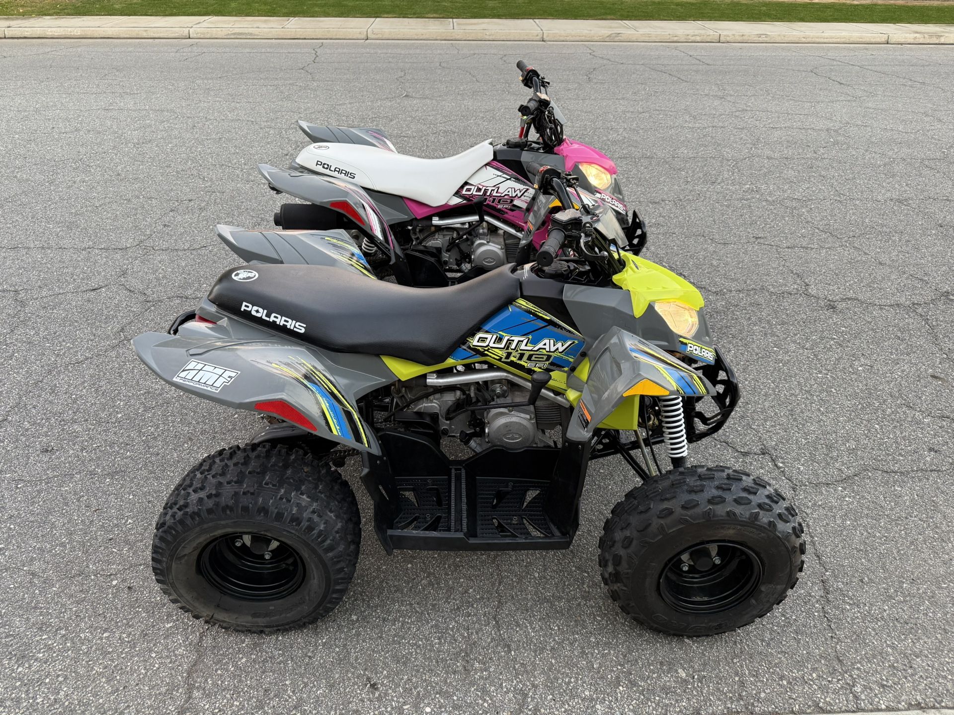Two Polaris outlaw 110s Kids quads. Both run good. Automatic with Reverse and Electric Start. Beginner friendly. Pink Slip in hand for both. $2650 Each $5300 For both. Price is Firm