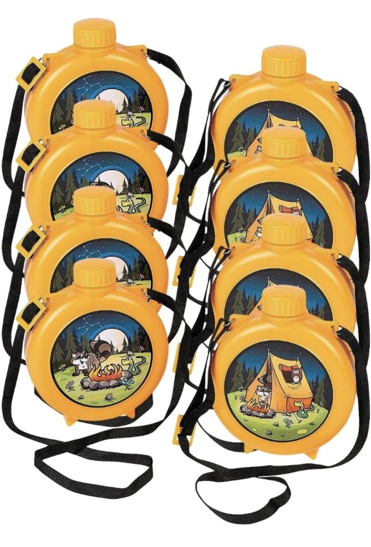 New Fun Express Camp Adventure Canteens for Kids, BPA Free Plastic, Camp Adventure Birthday Party Supplies and Toys, Yellow - Vacation Bible School Supplies/Decor - Set of 8 Pieces