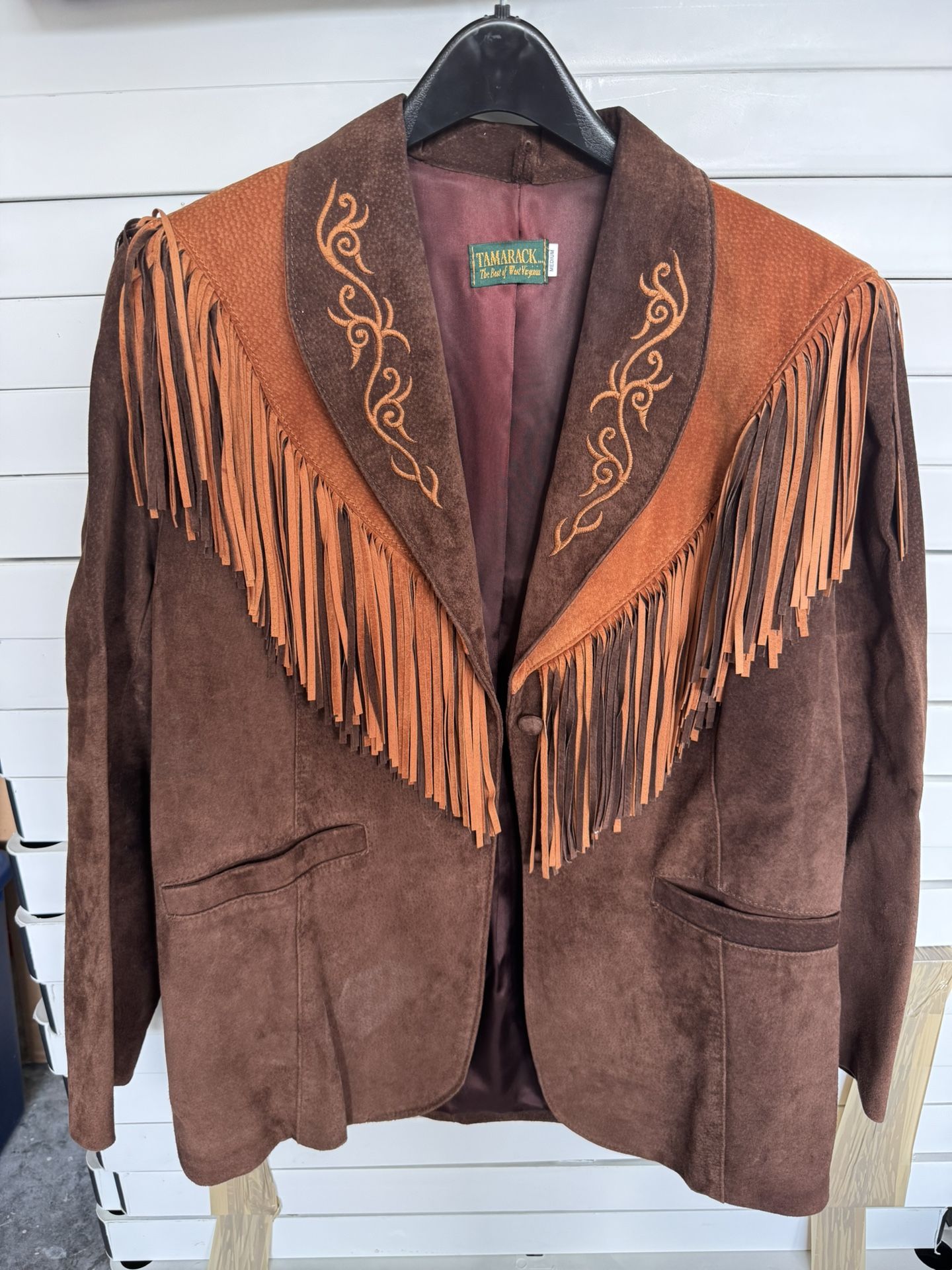 Brown with spice embroidery. Tamarack size M. Only accept cash.