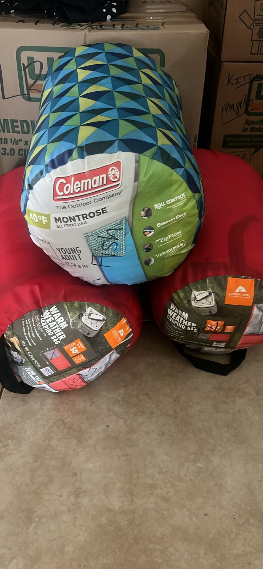 Good condition, used twice for summer camp. No longer need. 2 red: 50 degrees . Coleman 40 degrees.