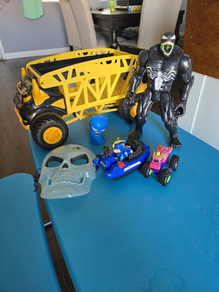 My 4 year old wanted to sell some toys so here they are. $5 for everything! thanks for checking it out and helping! π The big yellow truck holds monster truck toys by the way!