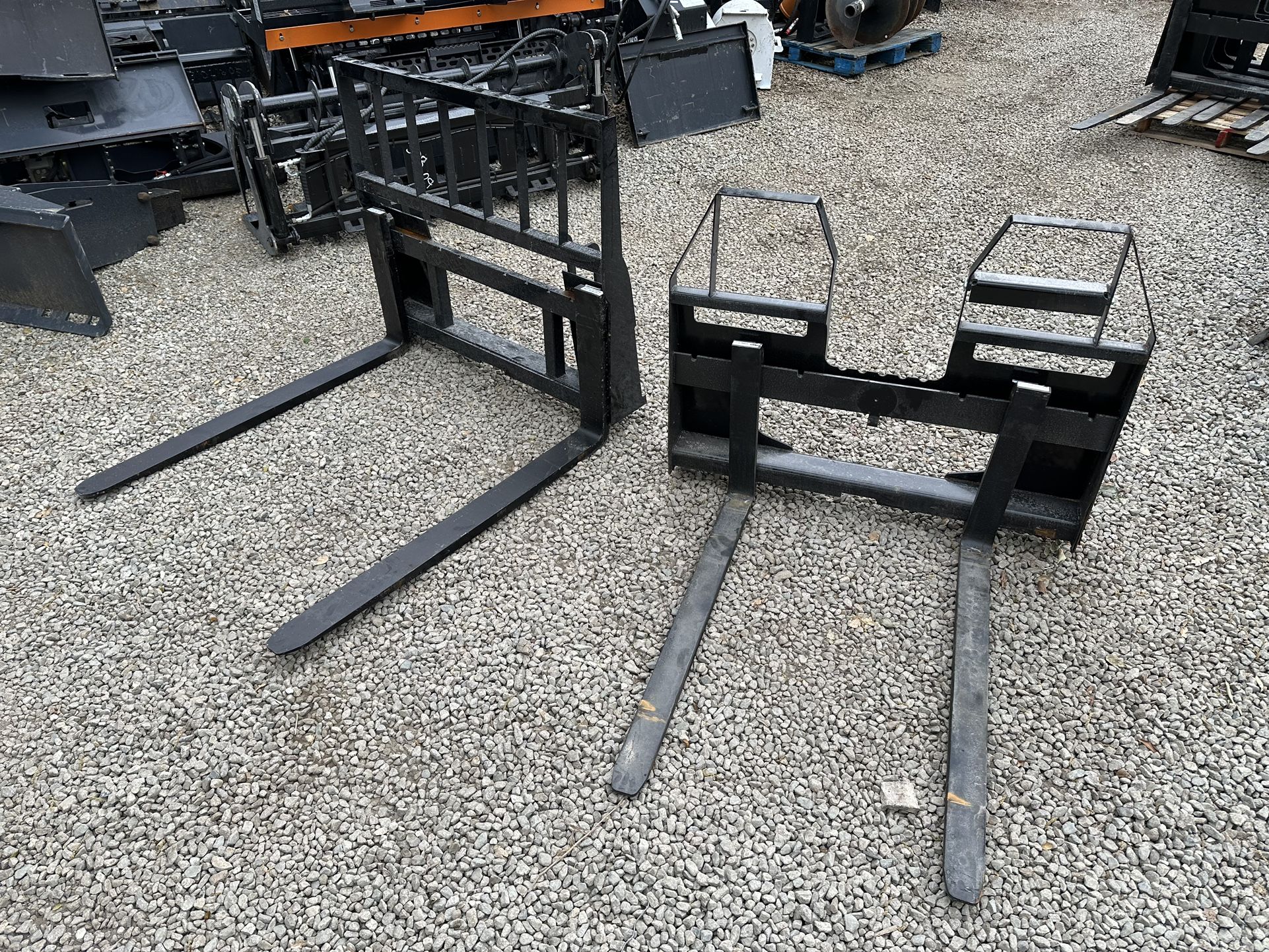 42inch walk through forks $850 48inch tall frame forks $1000 48inch hydraulic forks $1450 Also have a few more models available just ask. Fits normal skid steers like Bobcat caterpillar Kubota John Deere case newholland and more. Skid steer pallet fork attachment