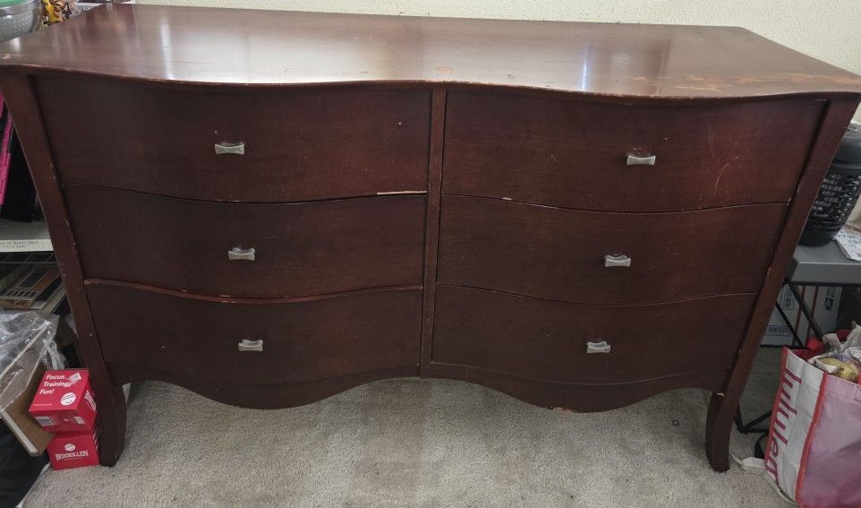 Vintage Dresser Solid Wood Brown Length 51.5" Width 21" Height 32" All drawers work great Heavy