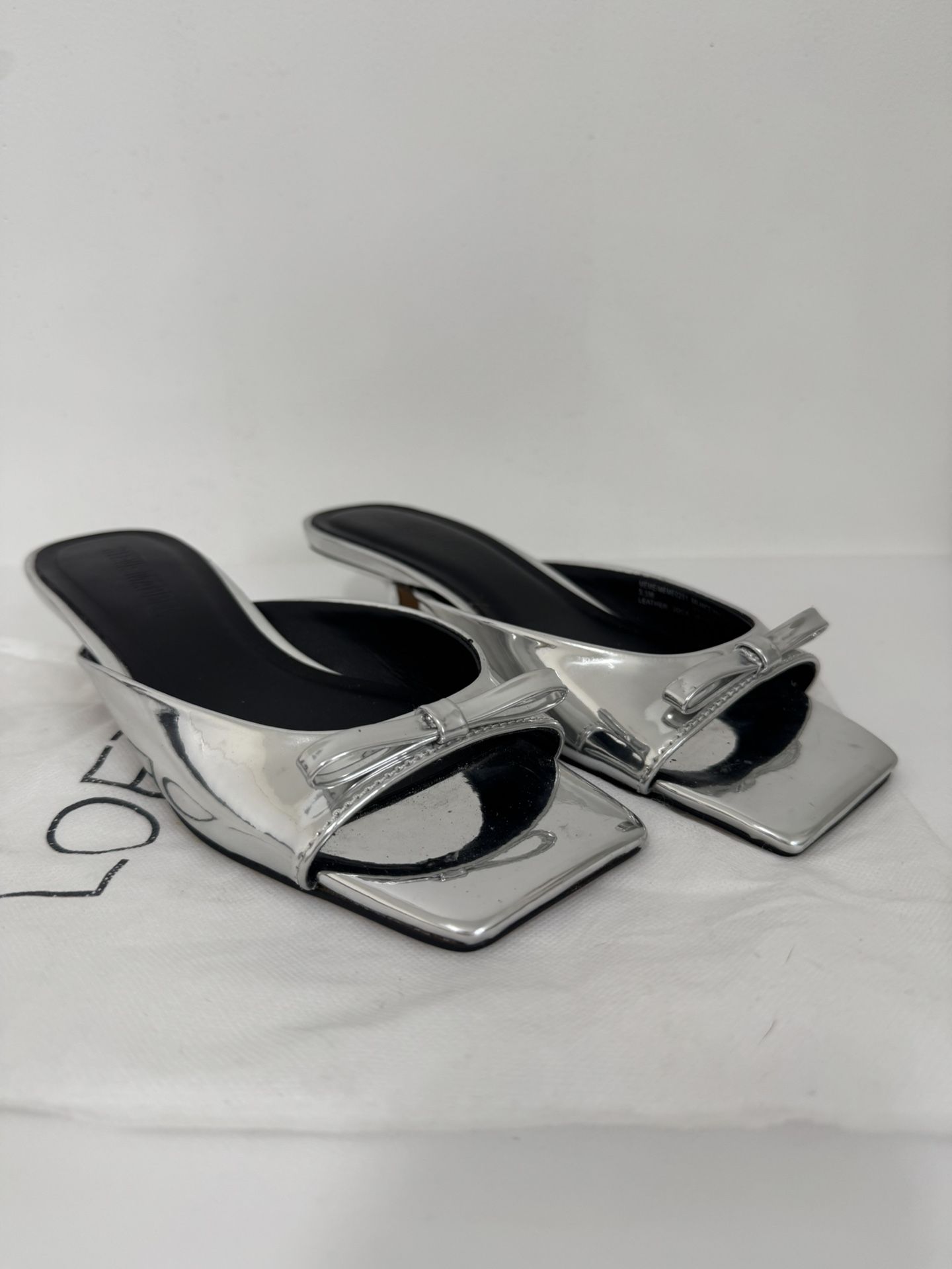 Steve Maden Women’s Size 5.5 Meme Silver Bow Kitten-heel Sandals Square Toe