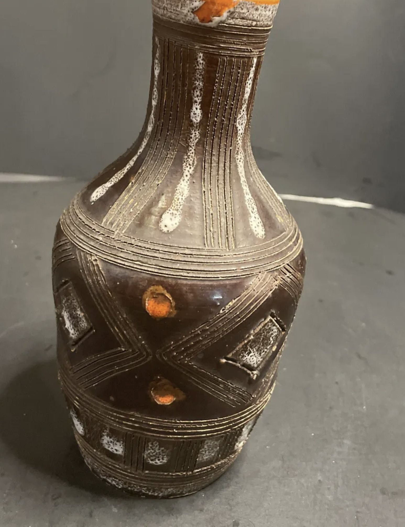 Vtg Italian Vase Hand Painted Incised Brutalist Lava Texture Bottle Bud Italy