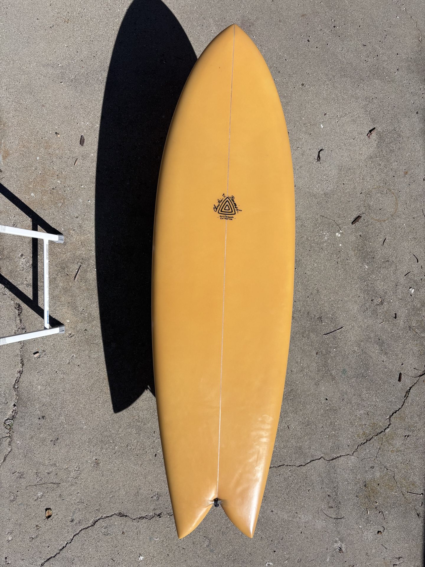 5’10” Christian Beamish Keel Fish: Excellent Condition - Resin Tint - Glassed-on Fins — $500 A rare one from 805 legend Christian Beamish (Surfboards California)—traditional keel fish with plenty of volume to catch waves but also super fast and skatey. This board is surprisingly stable in steeper waves but also goes great hitting the lip on small point surf. The glassed-on marine ply keel fins make this thing a rocket ship down the line. Needing to make some tough cuts; it will be missed. - 5’10” x 20-⅜” x 2 ½” - Glassed-on marine ply keels - PU / Poly construction - Wet sanded gloss finish - Mustard resin tint finish, top and bottom - Resin leash loop - One properly fixed puncture on the bottom Customs from Christian like this one cost minimum $1,000. Price for this board is $500. Top of the line Creatures of Leisure day bag and leash available for additional $50. Cash, Venmo, Zelle—no trades. — https://offerup.com/redirect/?o=aHR0cHM6Ly9jaHJpc3RpYW5iZWFtaXNoLmNvbS9zdXJmYm9hcmRzLWNhbGlmb3JuaWE=