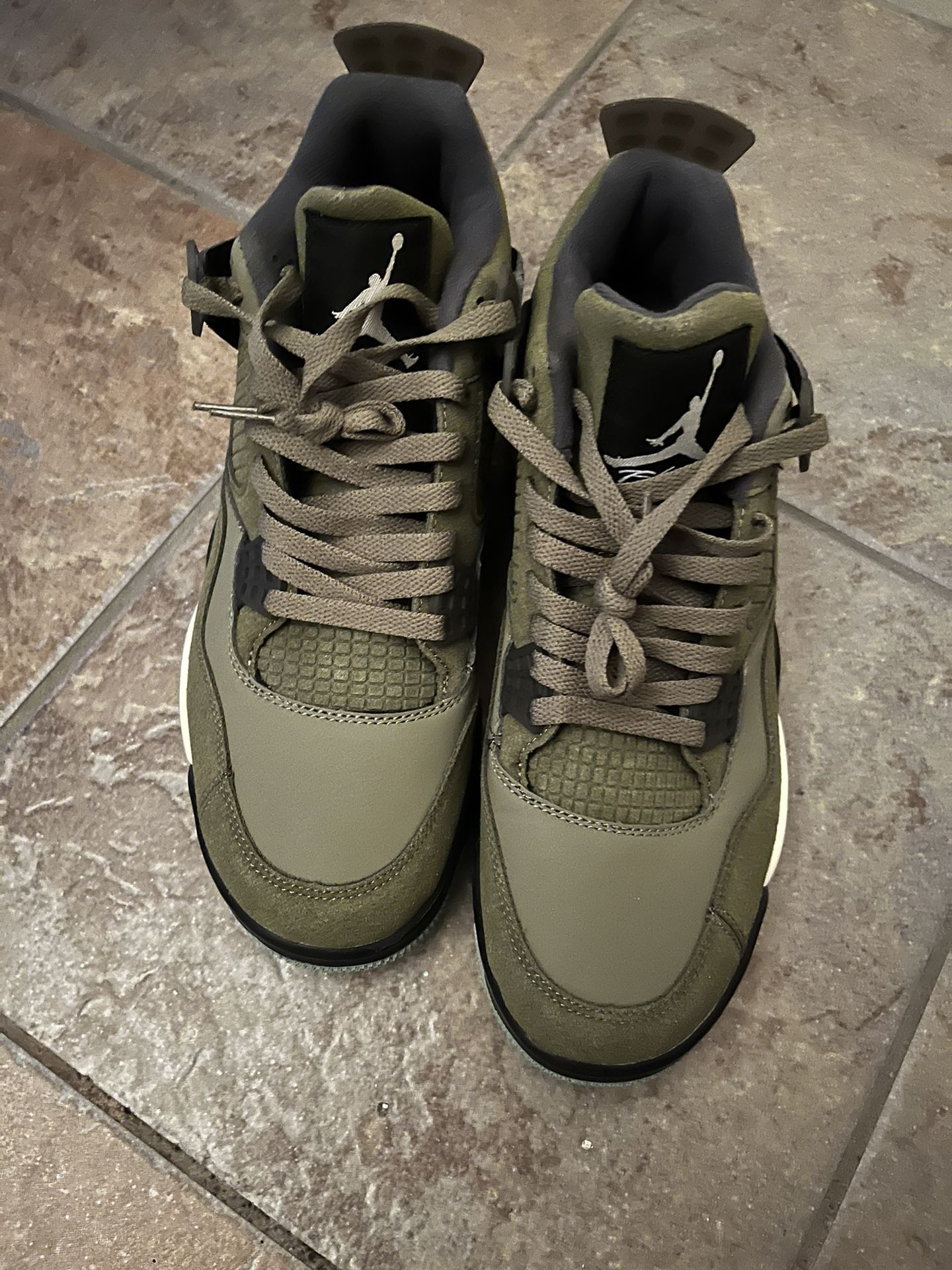 Jordan 4 Medium Olive, never worn, No box, comes as is first to buy gets. Open to all offers and trades. Honestly might just donate if no one buys