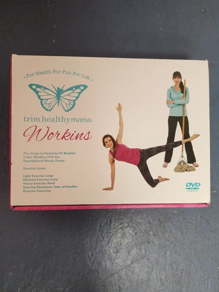 Trim healthy mama workins complete set retails $60 This is the "Workins" DVD set from Trim Healthy Mama. It is an exercise program designed for women that includes a booklet, a 9-disc DVD set and various exercise items. Pickup in Amelia near Kroger marketplace. Fcfs no holds without payment. Can accept venmo or cash. Smoke free home