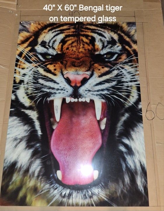 My sister loved tigers she purchased these for $400 each they are 40x60 in on tempered glass unfortunately she passed away and I have no room for them even though I love them dearly as I did her but financial situations arrise and unfortunately I have to get rid of them. I'm asking $300 each or $500 for both