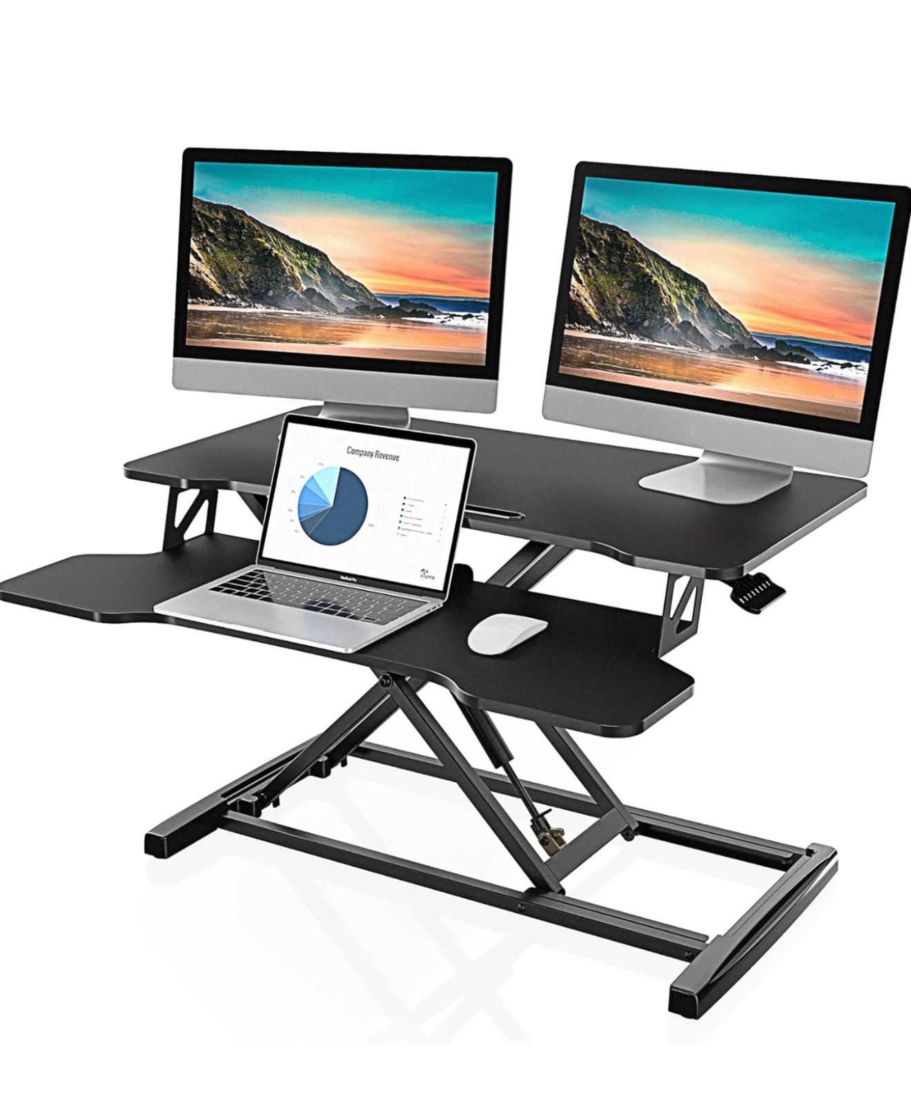 FITUEYES Height Adjustable Standing Desk 32” Wide Sit to Stand Converter Stand Up Desk Tabletop Workstation for Dual Monitor Riser FSD308001WB