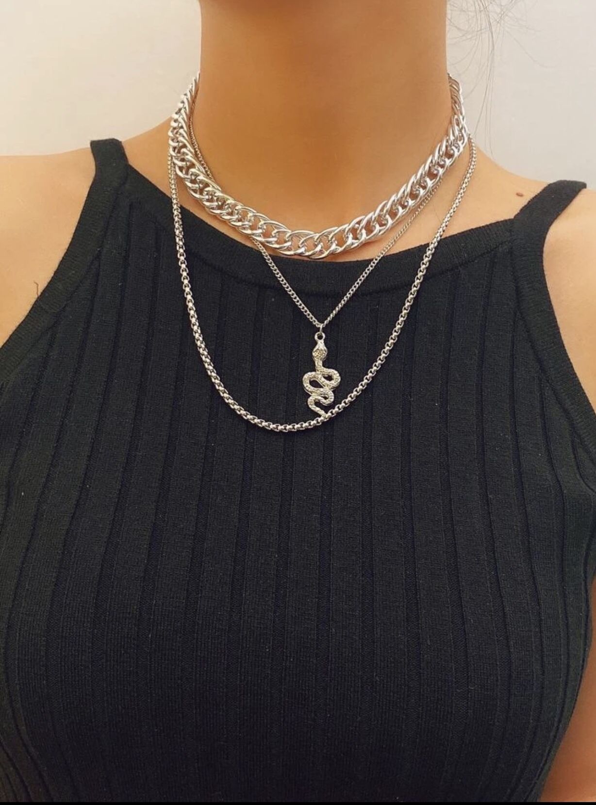 3Pcs Gorgeous Serpentine Charm Necklace Style: Casual Materials: Alloy Metal Color : Silver Color: Silver Necklace length : 13.8” - 19.7” Conditions: New without tags