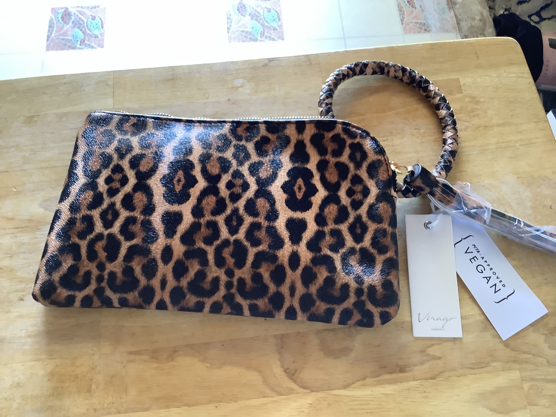 Virago Leopard Clutch Wristlet 10” Bag Purse Fringe Wallet Vegan Leather NWT! Pick Up Only in Apple Valley