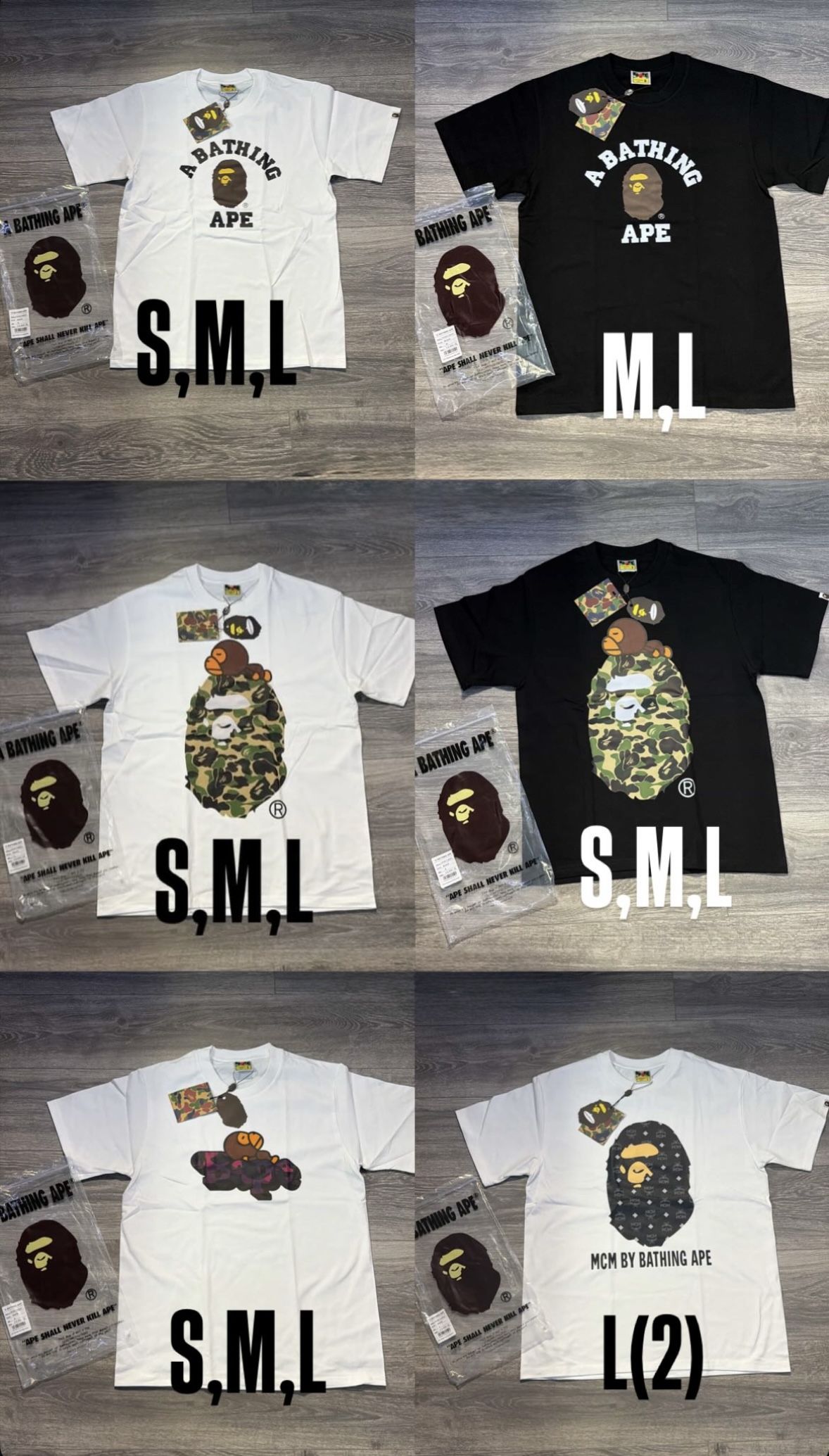 Bape shirts ( S, M, L)