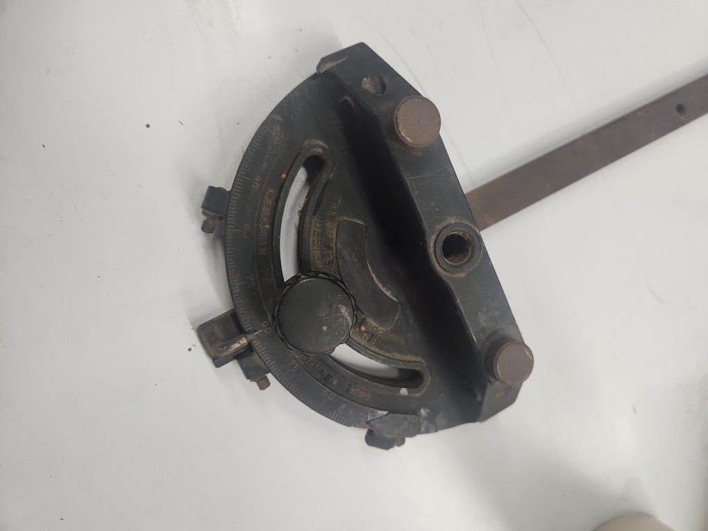 This is a rare plastic version from circa 1950's or 1960's. Somewhere along the line it must've been dropped and repaired. See pictures. It all works as it should. It's hard to make out. But it appears to say "NO 150" on the bottom. Possibly " 160" Miter Gage Rockwell. Vintage