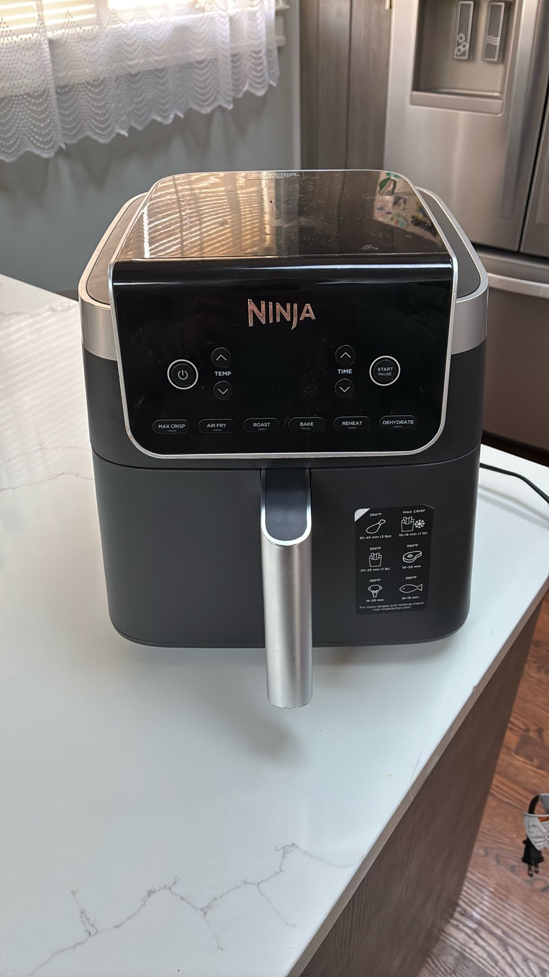 Used in a very good condition Ninja Air Fryer. Nothing is wrong with it, just needed an upgrade. Meet the Ninja Air Fryer Pro, a fast and easy way to get the perfect crisp with up to 400F of heat. Air Crisp Technology surrounds your favorite foods with superheated air for hot, crispy results. With 5 QT capacity, cook up to 4 lbs of fries using little to no oil and enjoy your favorite foods guilt-free. With Air Fry, Roast, Reheat, and Dehydrate, the options are endless. 4 cooking functions lets you satisfy any craving, from crispy snacks to full meals. Then, cleanup is a breeze with a nonstick basket and crisper plate.