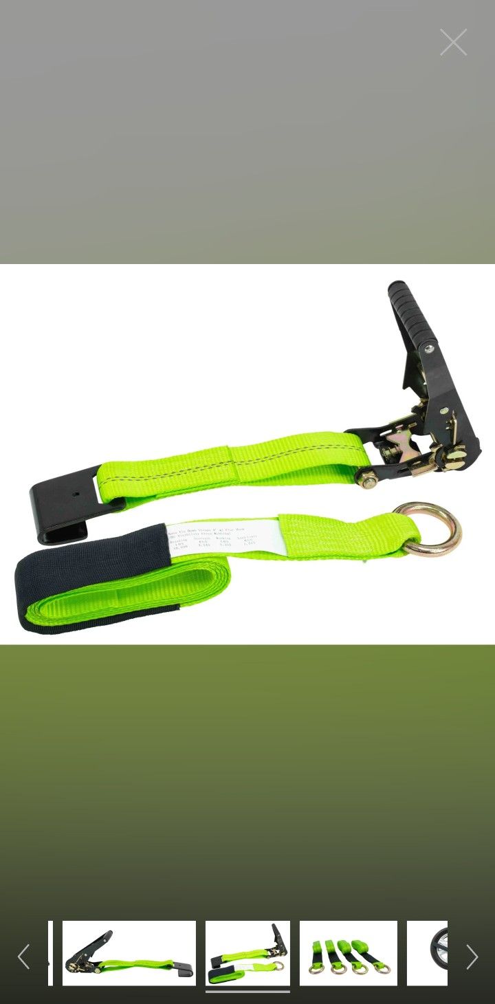 Auto Tie Down Straps w/ Flat Hook (High Visibility Green Webbing)