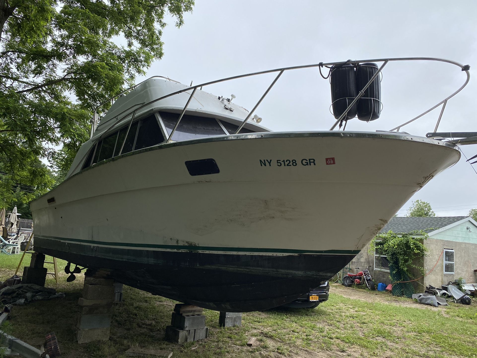 FREE Not running and needs a good cleaning…..but everything interior works. Would be great as a live aboard as a beach house. Full bath w shower, galley with cabinets, stovetop, microwave, 2 marine refrige, 1 ice maker, dinette that converts to full bed, pull out full sofa, large v-berth, has all cushions for berth and dinette. This is a project boat that I started but just don’t have time to finish. Have a vacation home on the water without the expense!!! FYI… I have removed the couch/bed in the main salon to add more room. Excellent to part out, I just don’t have the time
