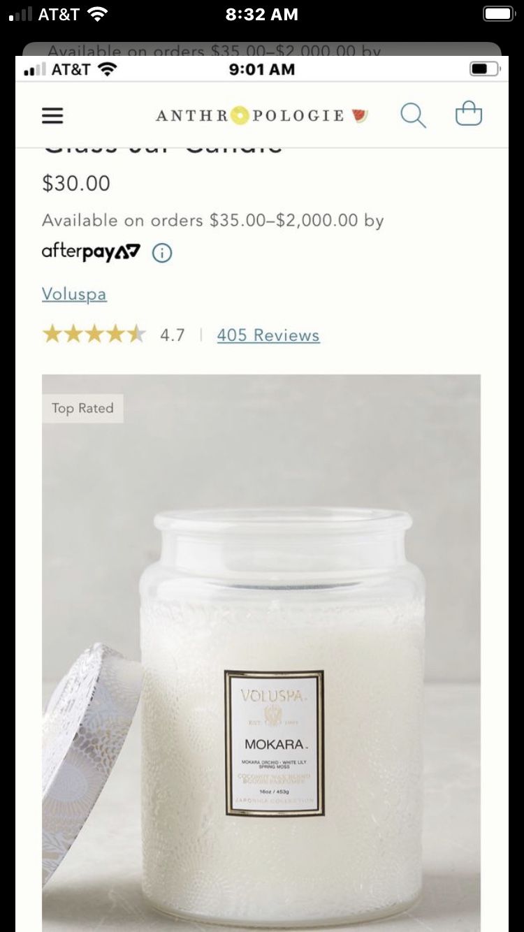 1 Voluspa Candle Anthropologie Mokara Limited Edition Cut Glass Jar Candle. Brand New. Paid $35. Asking $20 Firm West Elm