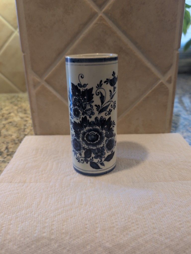 vintage Delft Blue cylinder vase 6in