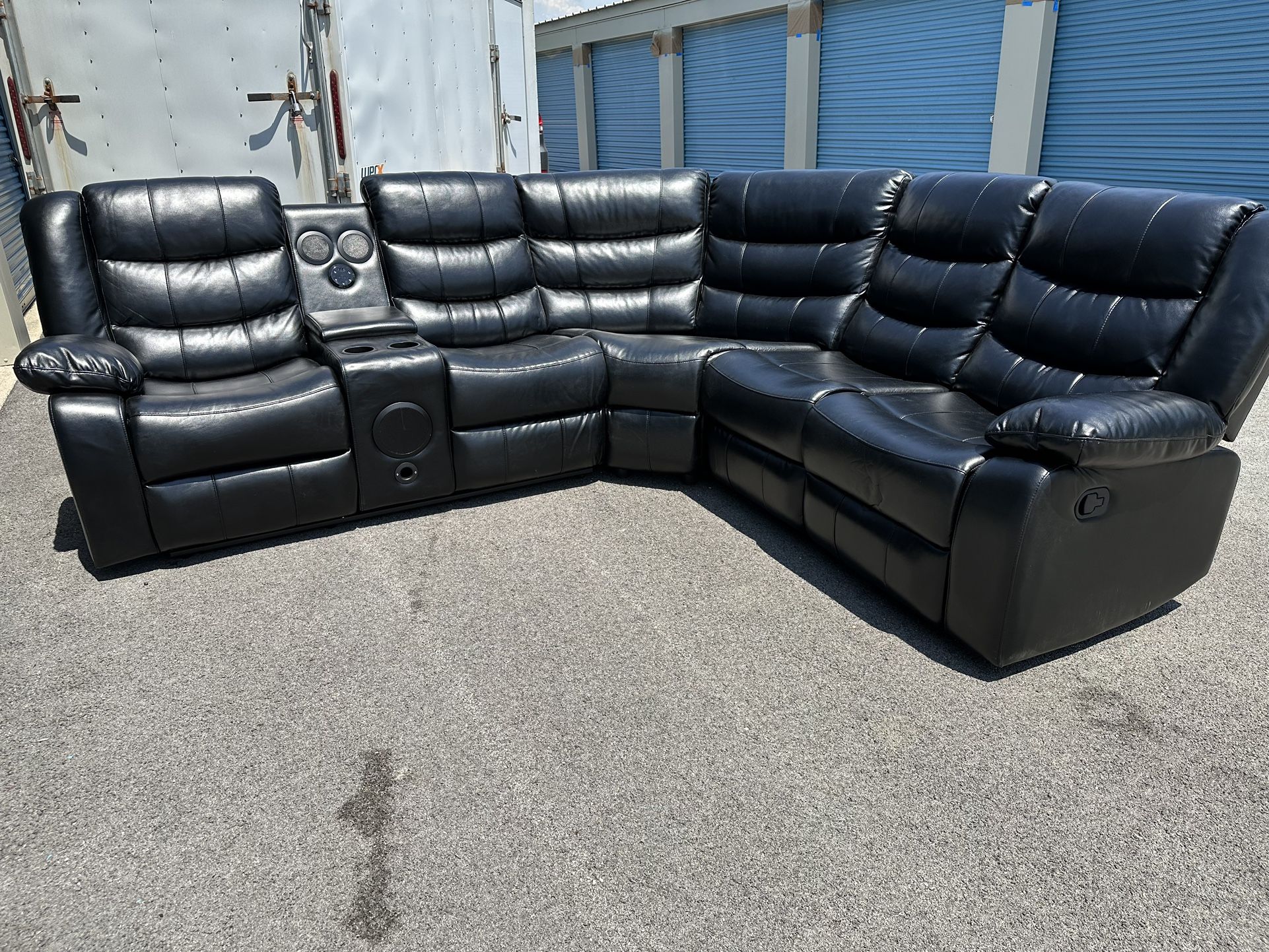Sectional with 2 recliners, one on each end. Built-in Bluetooth speakers Can deliver for a fee!