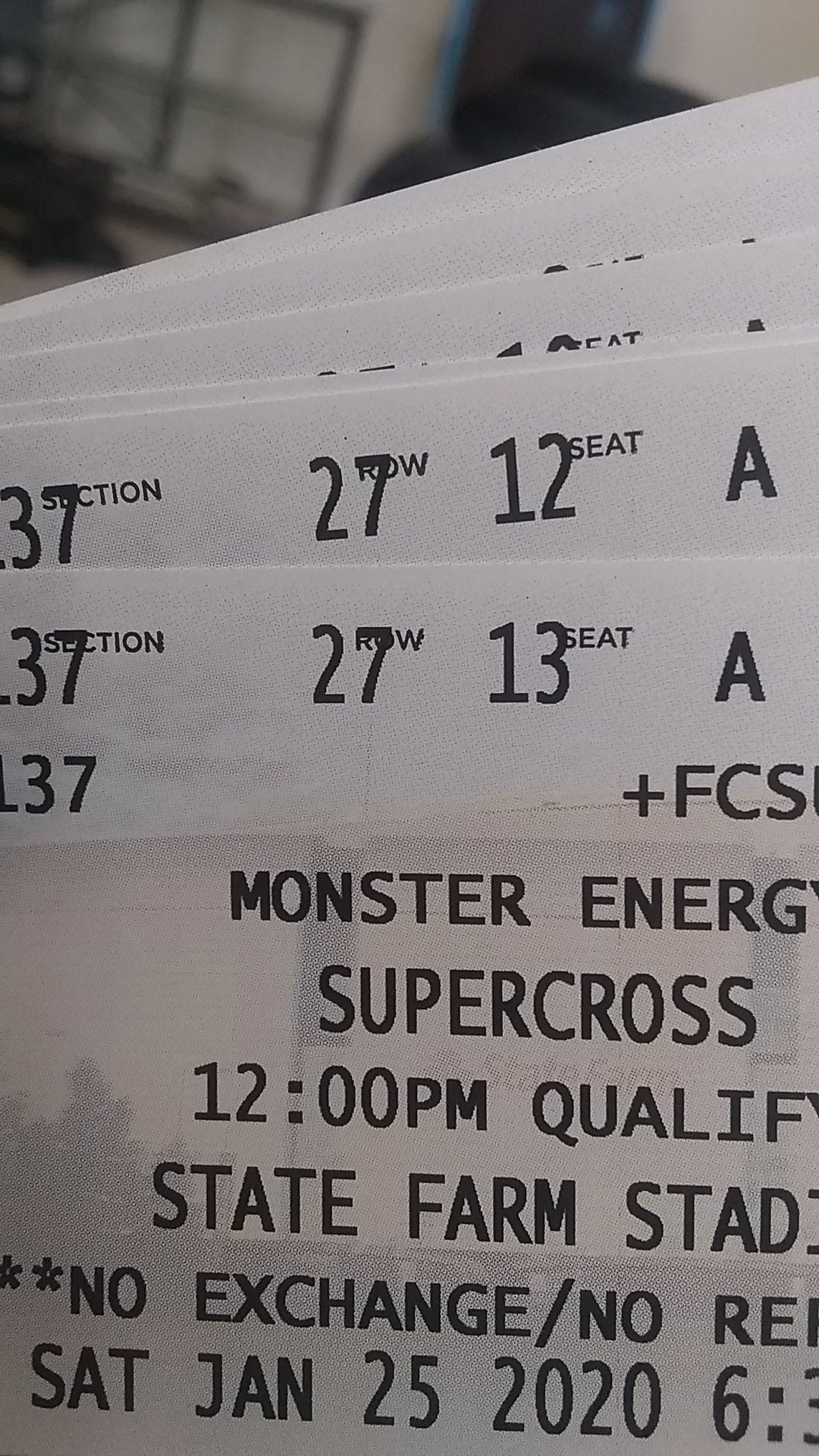 6 tickets lower level. Monster Energy Supercross. $55 each