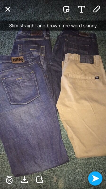 RSQ pants size w31 l32 two pairs are the same almost a light navy on the thigh and darker towards the feet Brown free world all pants are SLIM STRAIGHT $40 RSQ free world size 30 $30 BUNDLES CAN BE WORKED OUT NO LOW BALL