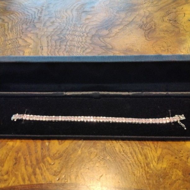 Estate. 7.25" silver and pink sapphire braclet. 51 round stones. Stamped 925 and Thailand. Safety latch