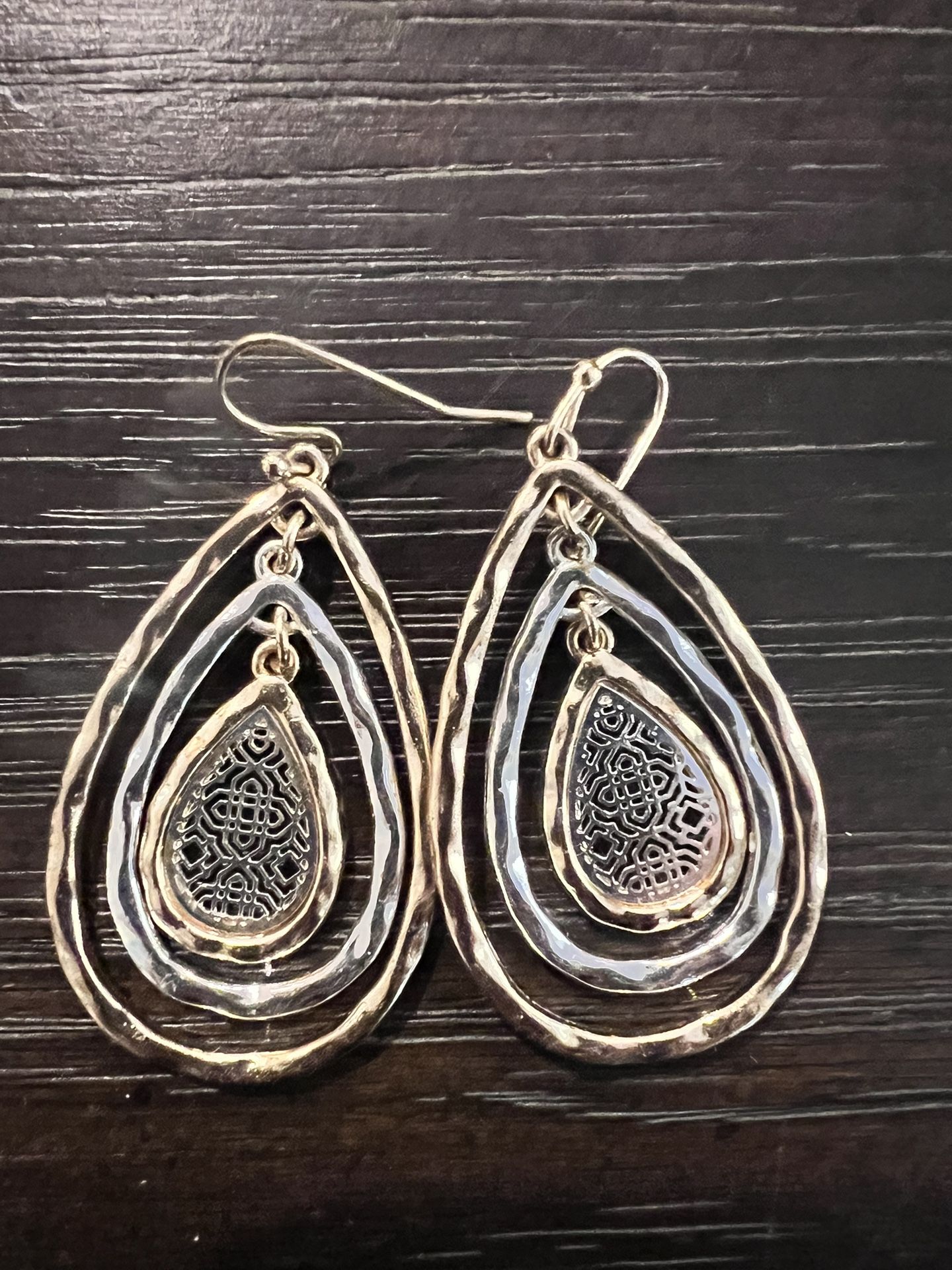 Gold/Silver tone pierced earrings. Hook earring clasp.