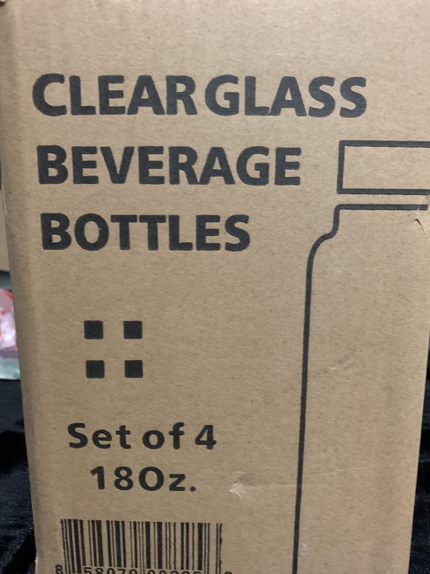 4 new glass beverage bottles. Open box